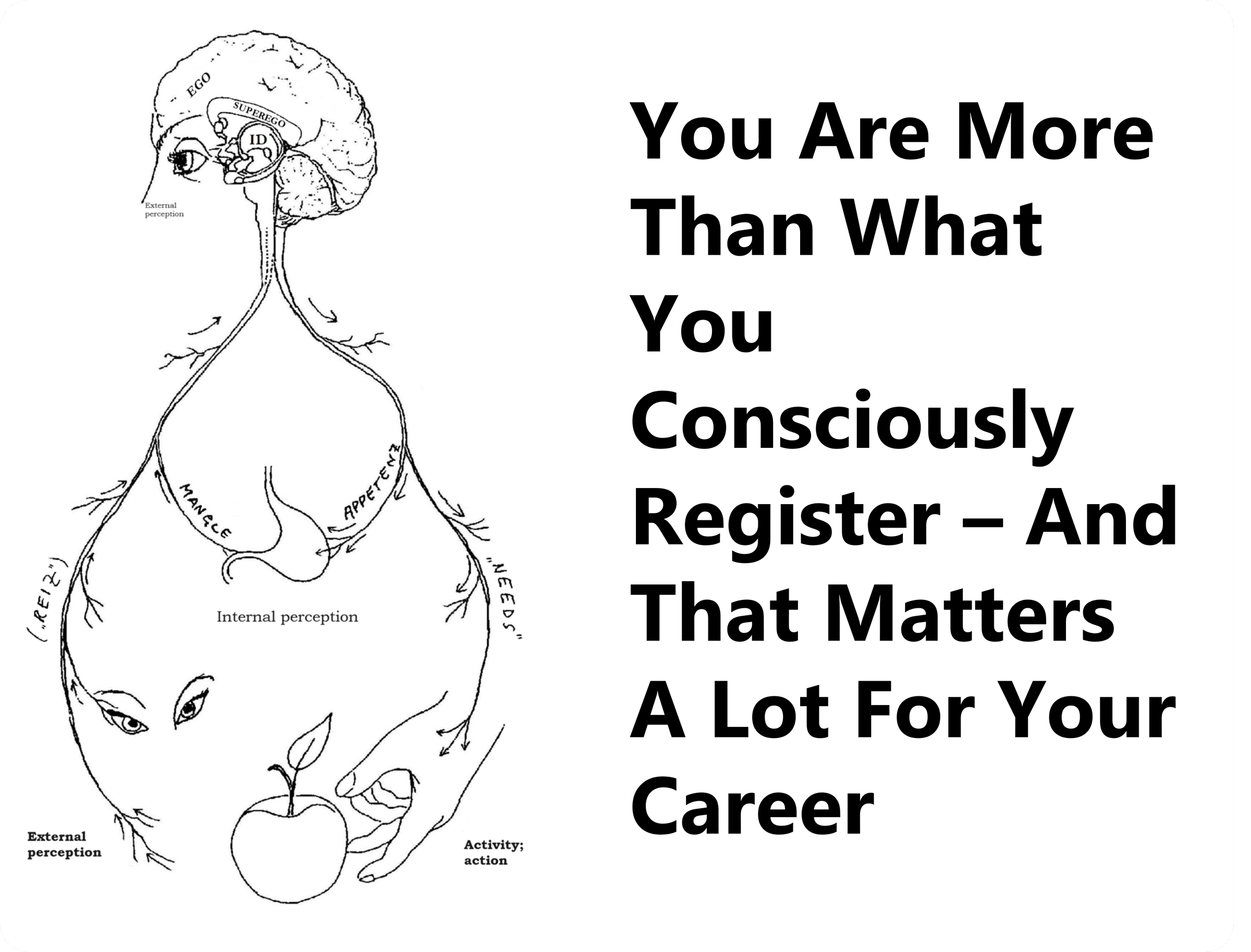 Some will remember this picture – however, I like it a lot because shows that everything you see, hear, feel, or otherwise perceive goes through several layers of neurological processing before you even become aware of a fraction of it. Of course, we don’t need to discuss that the Ego, Superego, Id, or any related instances are not localized in a single structure.